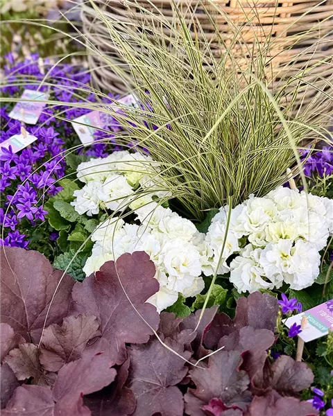 Mit sorgfältig zusammengestellten Pflanzenkombinationen entstehen das ganze Jahr über stimmige Farbkompositionen, die Terrassen, Balkone und Gärten in echte Blickfänge verwandeln und Inspiration für die eigene Bepflanzung liefern.