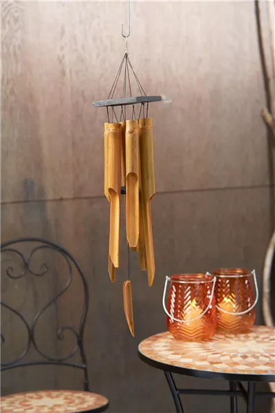 Als Dekoration Ihrer Terrasse oder dem Balkon eignet sich das zarte Windspiel aus Holz perfekt, um schnell ein "INCA"-Feeling zu erhalten. Die LED-Lichterkette sorgt im Dunkeln für ein angenehmes Ambiente. Ihre Lieblingspflanzen, in dem Pflanzhocker aus Binse platziert, rundet das Ensemble ab und strahlt südamerikanische Lebensfreude in Ihrem Sommerzimmer aus.