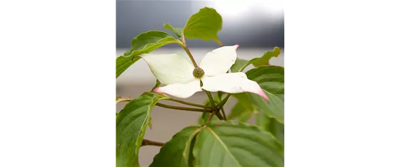 Der Chinesische Blumenhartriegel (Cornus kousa) wächst straff und kann gut eine Höhe von 5 - 6 m erreichen. Seine eher unscheinbaren Blüten bildet er in der Zeit von Mai bis Juni. Sie werden von vier großen, weißen Hochblättern umrahmt und sind so für jedes Auge ein Blickfang. Es gibt auch Sorten mit cremeweißen oder rosafarbenen Hochblättern. Ab September entwickeln sich rosafarbene, himbeerähnliche Früchte. Seine Herbstfärbung, die je nach Sorte gelb bis dunkelrot ist, macht ihn zu einem der schönsten Gehölze im Garten. Blumenhartriegel stehen gern sonnig bis halbschattig.