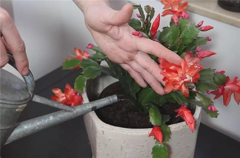 Damit Sie lange Freude an Ihrer neuen Pflanze haben, sollten Sie sie zunächst in ein etwas größeres Gefäß umtopfen. So können die Wurzeln frische Erde durchwurzeln und der Weihnachtskaktus wird gut mit Wasser und Nährstoffen versorgt.