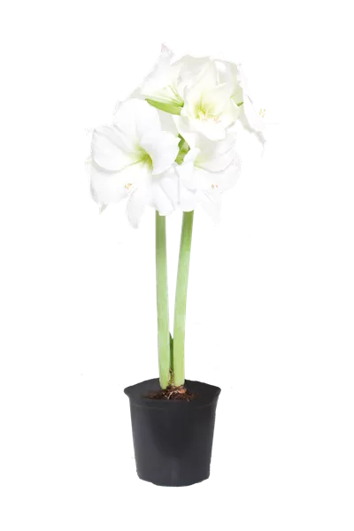 Die Amaryllis (Hippeastrum) in den Trendfarben Weiß und Hellgrün gibt sich erhaben und stolz. Mit ihr können Sie Esstische und Kommoden modern und festlich schmücken.